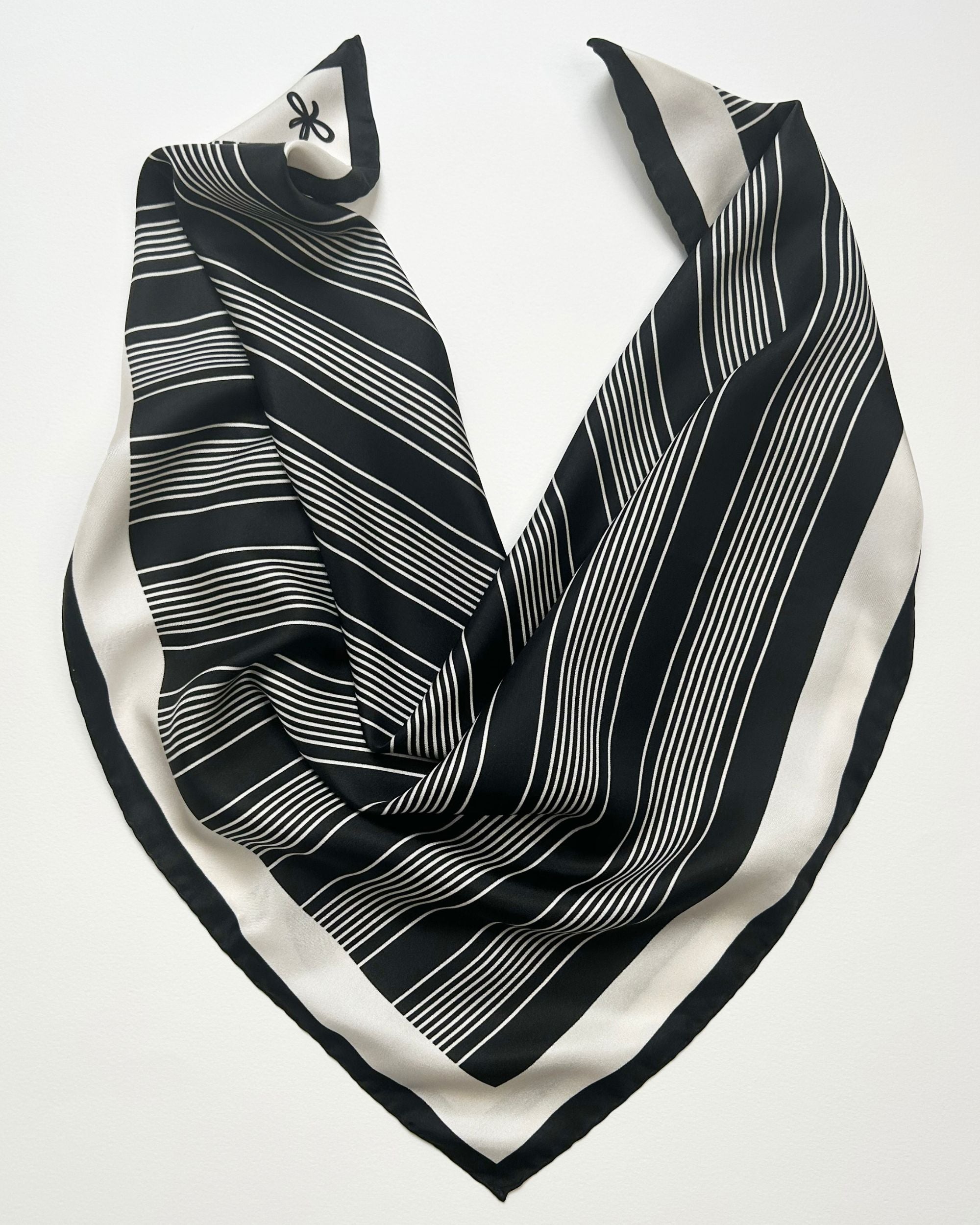 Crafted in 100% twill silk and produced in small editions, the scarves are made either in Italy’s prestigious Como region or in Spain by specialised ateliers. Every piece is hand-finished using traditional roulottage techniques, creating softly rolled edges that speak to true craftsmanship.